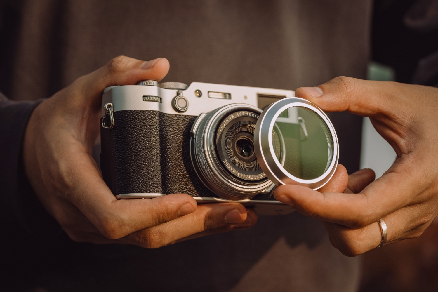 O design foi desenvolvido especificamente para a série X100, enroscando diretamente na câmara após remover o anel original, sem necessidade de adaptadores. A construção compatível com macro garante que o barril da lente se estenda sem restrições, mantendo a capacidade de focagem mínima nativa.